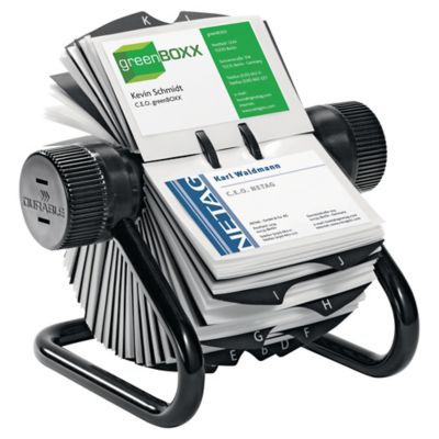 Questo articolo rolodex 67236 schedario rotativo per biglietti da visita. L 19 5 x p 19 x h 12 cm. Durable 248101 visifix rotary file schedario rotativo da scrivania 200 buste 400 biglietti indice alfabetico 25 tasti nero. Schedario rotativo da scrivania esclusivo e funzionale.