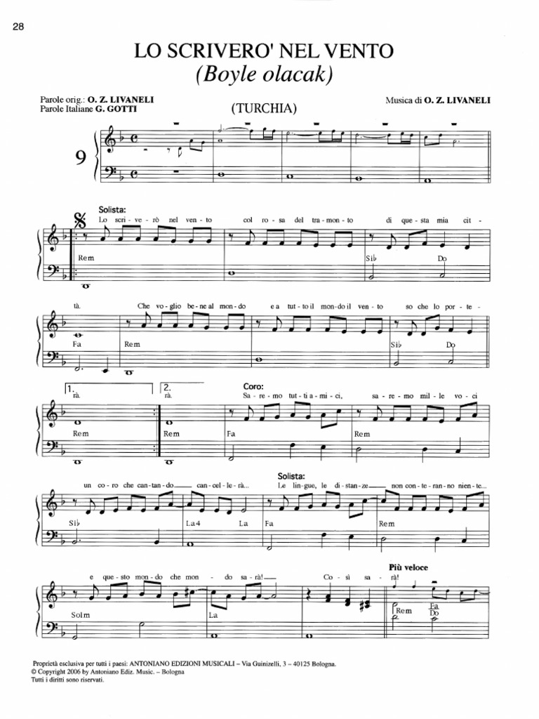Gli autori delle canzoni selezionate cedono all antoniano i diritti di riproduzione dei pezzi e la metà dei proventi da essi derivanti 15. Io l userei per daria. I partner dello zecchino. Riadattato nel testo da padre jean marie benjamin con la musica di riz ortolani dolce sentire ha avuto una straordinaria diffusione grazie all interpretazione di claudio baglioni che ha inserito il brano nel suo quarto 45 giri insieme ad altre due canzoni presenti nel capolavoro di zeffirelli.